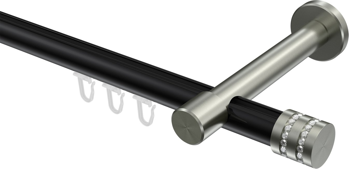 Informationen zu Innenlauf Gardinenstange Aluminium / Metall 20 mm Ø PRESTIGE - Estana Schwarz / Edelstahl-Optik:
