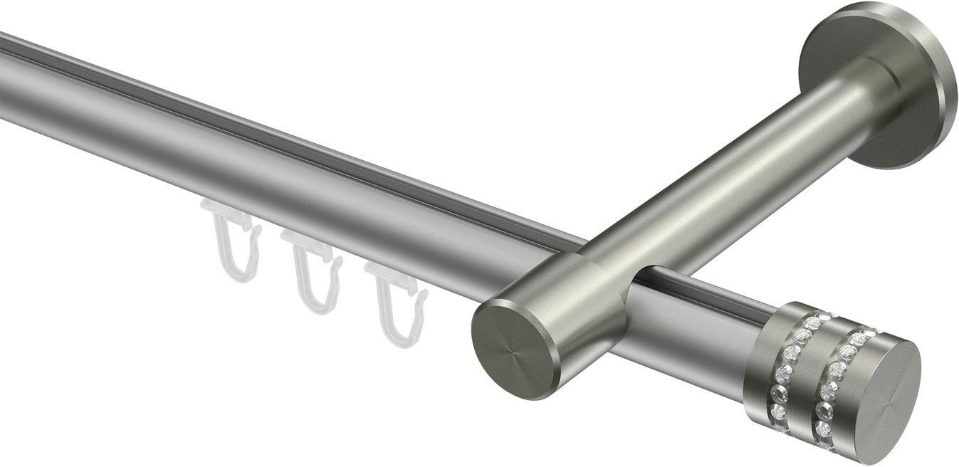 Gardinenstangen mit Innenlauf aus Aluminium / Metall in 20 mm Ø, 1-läufig, Modell PRESTIGE - Estana Silbergrau / Edelstahl-Optik