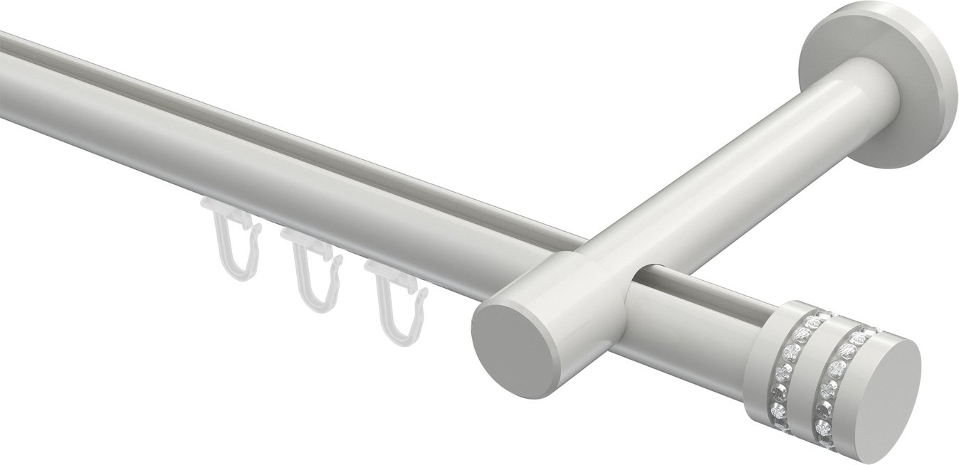 Gardinenstangen mit Innenlauf aus Aluminium / Metall in 20 mm Ø, 1-läufig, Modell PRESTIGE - Estana Weiß