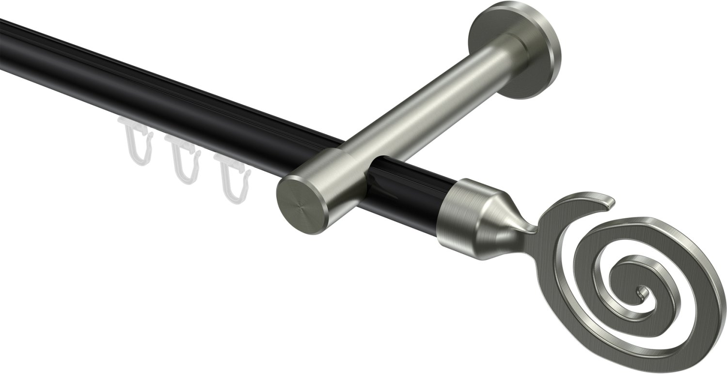 Informationen zu Innenlauf Gardinenstange Aluminium / Metall 20 mm Ø PRESTIGE - Galaxa Schwarz / Edelstahl-Optik: