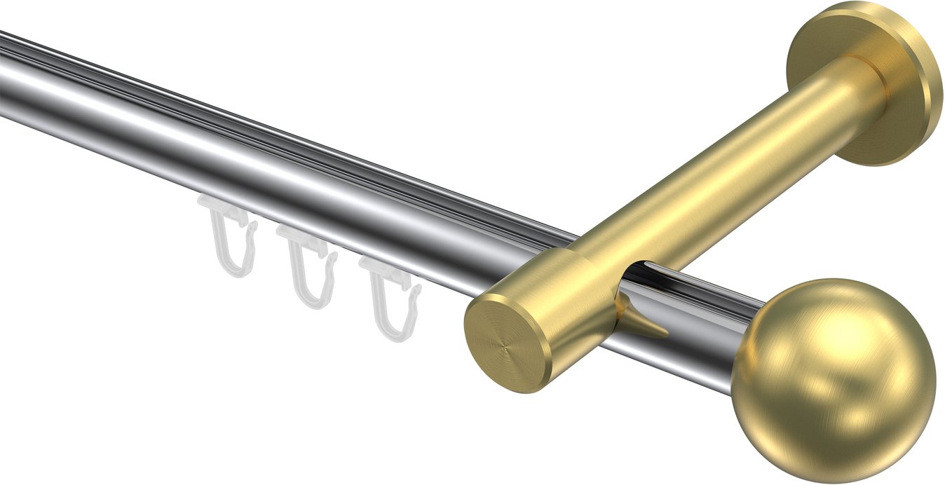 Gardinenstangen mit Innenlauf aus Aluminium / Metall in 20 mm Ø, 1-läufig, Modell PRESTIGE - Luino Chrom / Messing-Optik