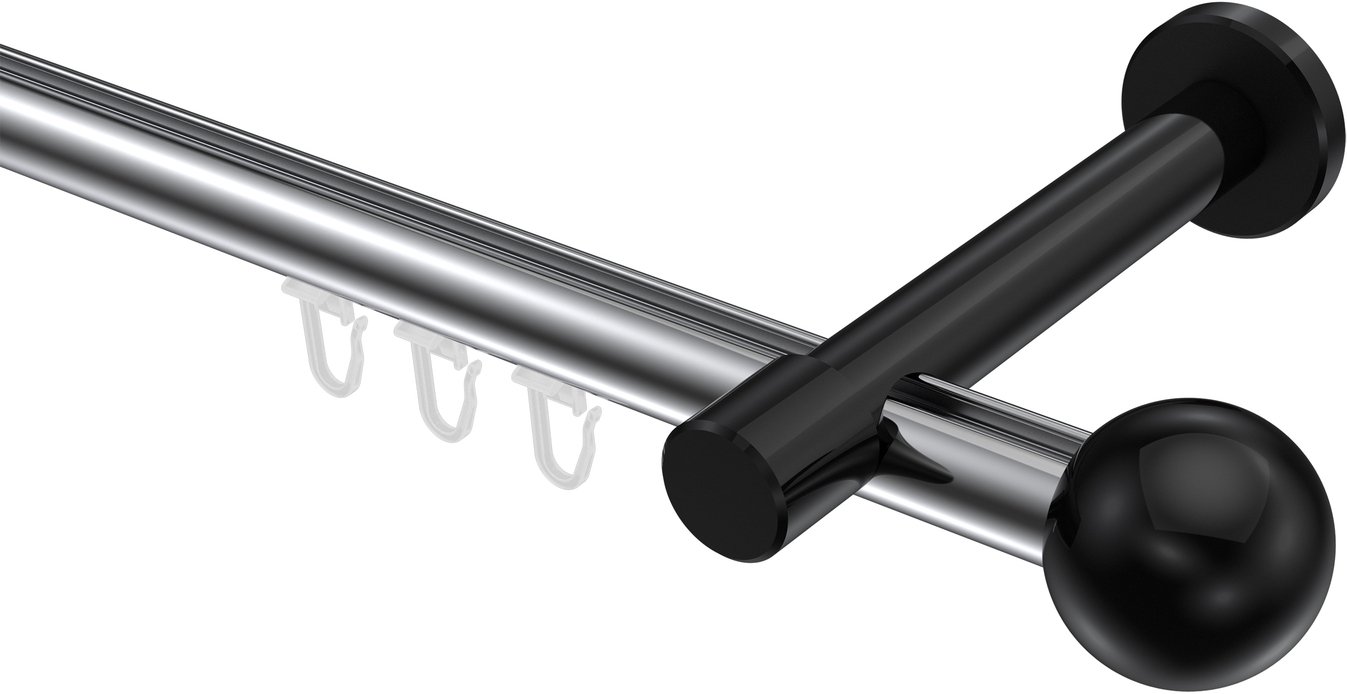 Gardinenstangen mit Innenlauf aus Aluminium / Metall in 20 mm Ø, 1-läufig, Modell PRESTIGE - Luino Chrom / Schwarz