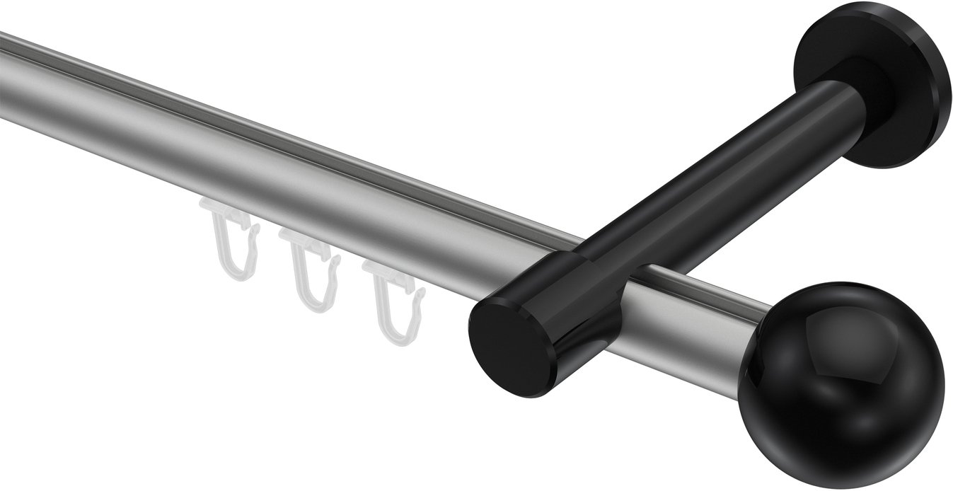 Informationen zu Innenlauf Gardinenstange Aluminium / Metall 20 mm Ø PRESTIGE - Luino Silbergrau / Schwarz: