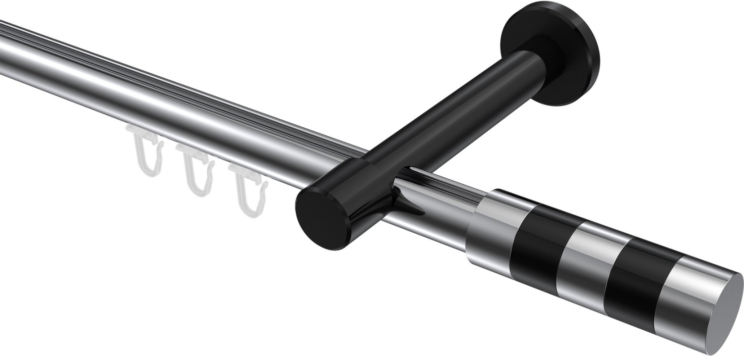 Gardinenstangen mit Innenlauf aus Aluminium / Metall in 20 mm Ø, 1-läufig, Modell PRESTIGE - Mavell Chrom / Schwarz