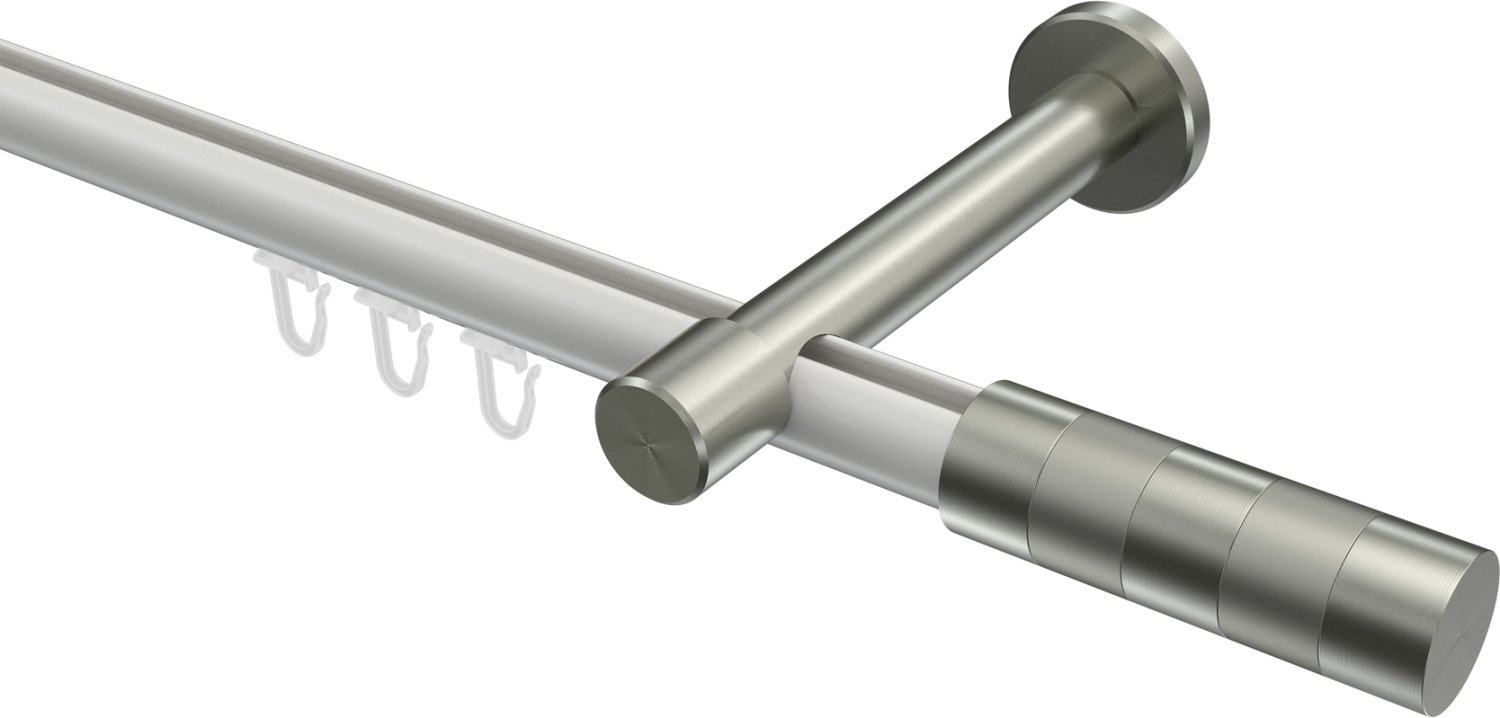 Informationen zu Innenlauf Gardinenstange Aluminium / Metall 20 mm Ø PRESTIGE - Mavell Weiß / Edelstahl-Optik:
