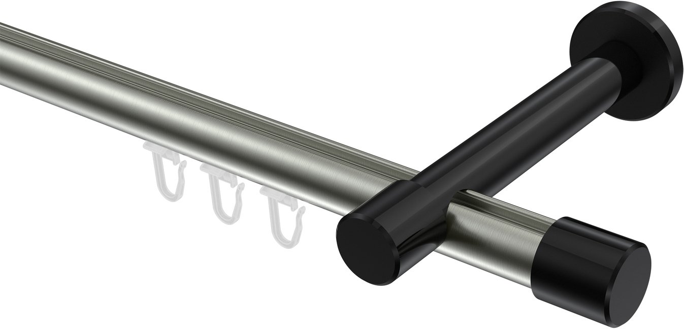 Gardinenstangen mit Innenlauf aus Aluminium / Metall in 20 mm Ø, 1-läufig, Modell PRESTIGE - Santo Edelstahl-Optik / Schwarz