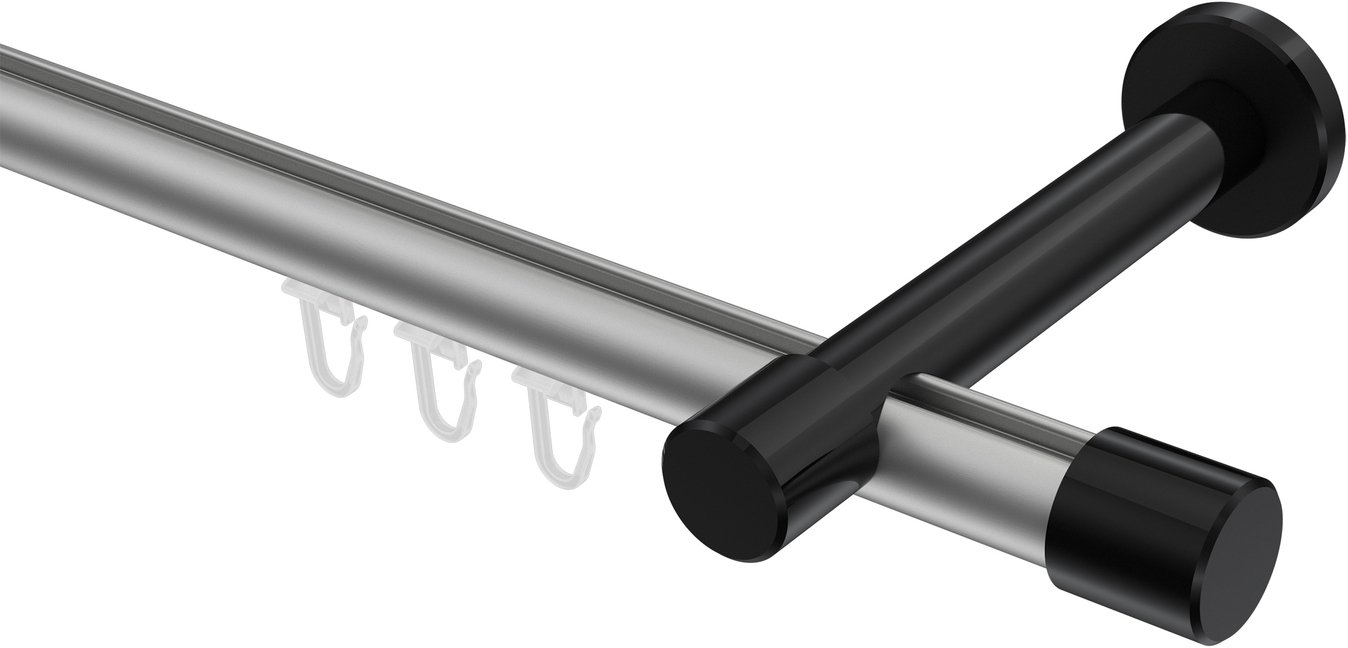 Gardinenstangen mit Innenlauf aus Aluminium / Metall in 20 mm Ø, 1-läufig, Modell PRESTIGE - Santo Silbergrau / Schwarz