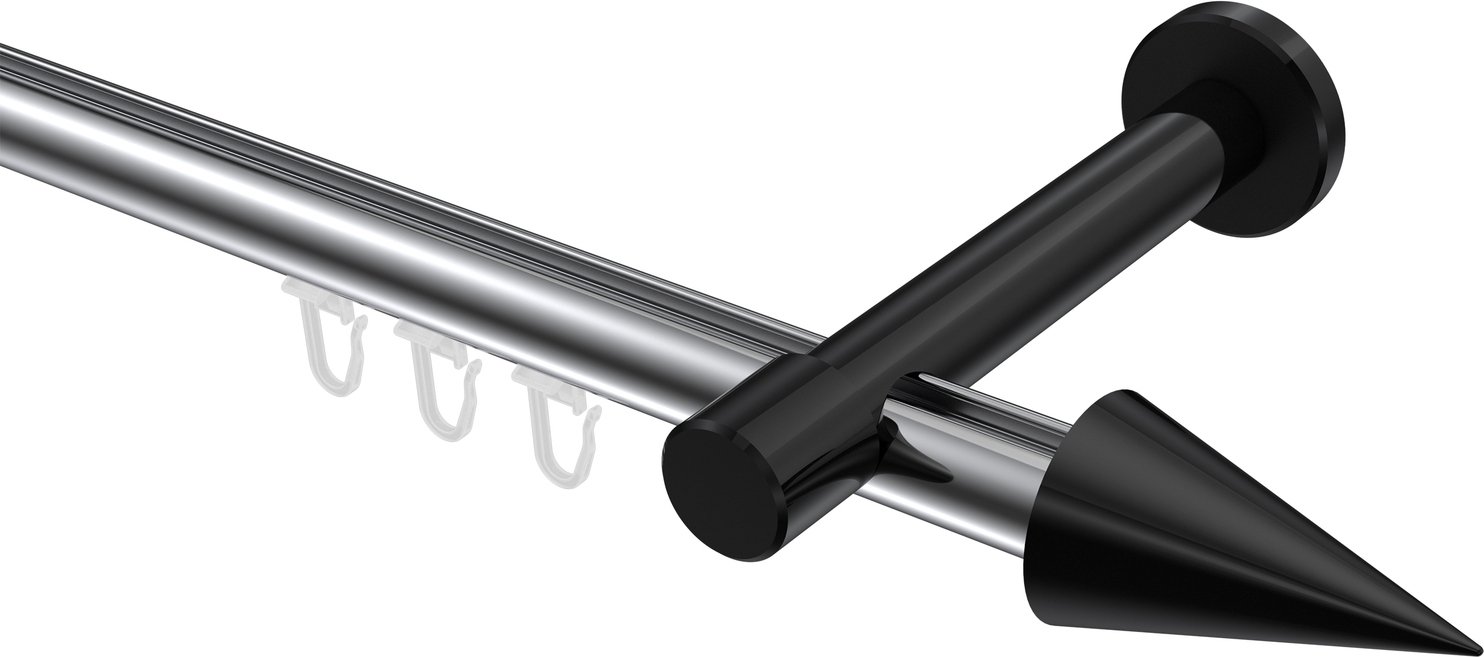 Gardinenstangen mit Innenlauf aus Aluminium / Metall in 20 mm Ø, 1-läufig, Modell PRESTIGE - Savio Chrom / Schwarz