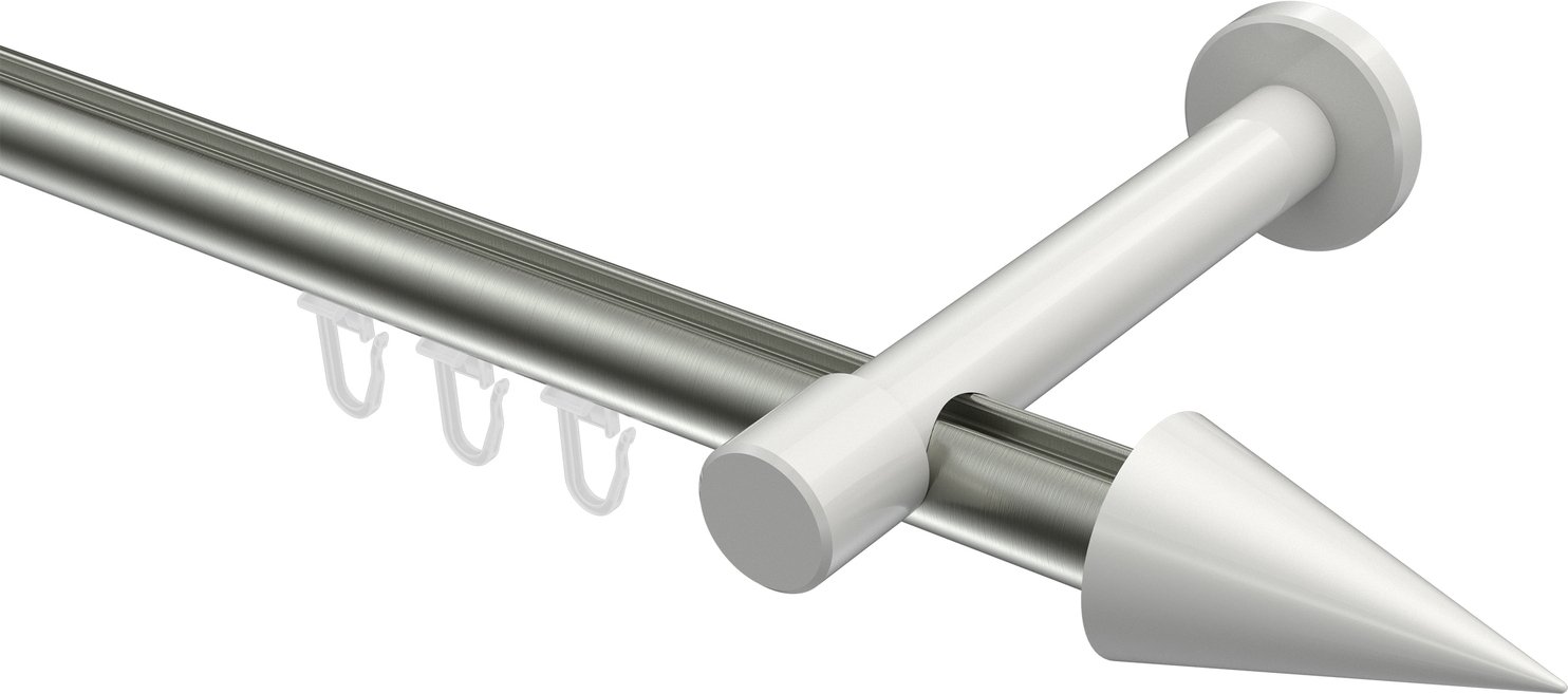 Informationen zu Innenlauf Gardinenstange Aluminium / Metall 20 mm Ø PRESTIGE - Savio Edelstahl-Optik / Weiß: