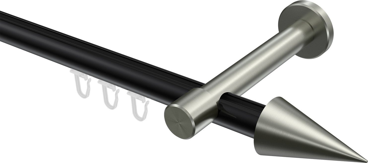 Informationen zu Innenlauf Gardinenstange Aluminium / Metall 20 mm Ø PRESTIGE - Savio Schwarz / Edelstahl-Optik: