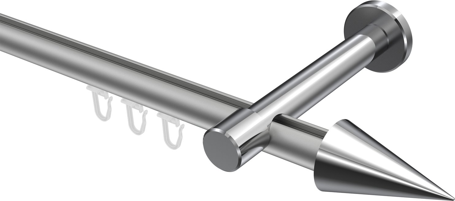 Gardinenstangen mit Innenlauf aus Aluminium / Metall in 20 mm Ø, 1-läufig, Modell PRESTIGE - Savio Silbergrau / Chrom