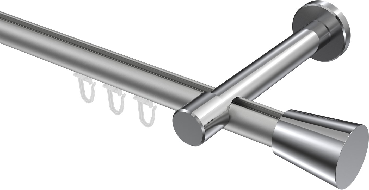 Gardinenstangen mit Innenlauf aus Aluminium / Metall in 20 mm Ø, 1-läufig, Modell PRESTIGE - Sitra Silbergrau / Chrom