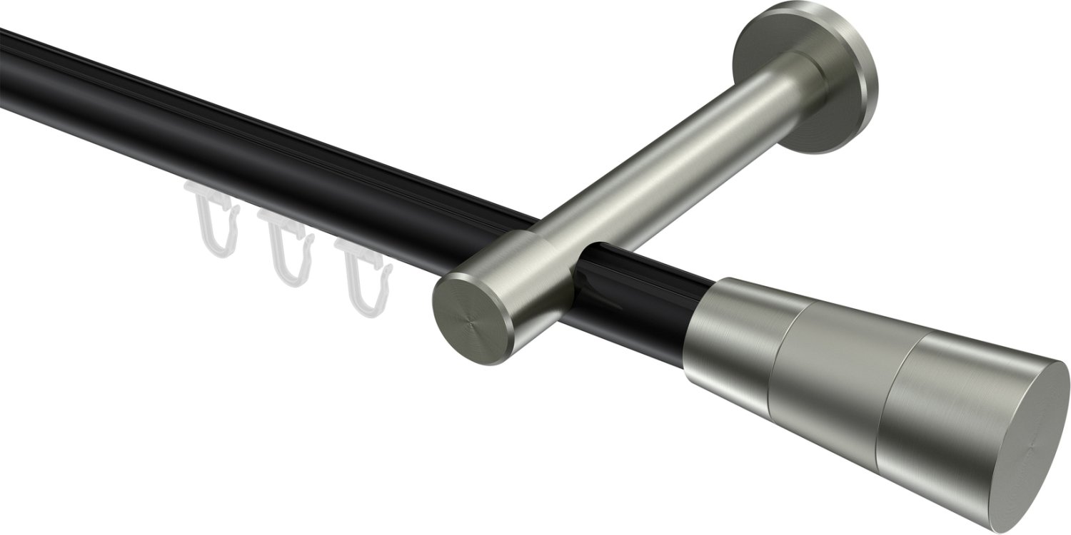 Informationen zu Innenlauf Gardinenstange Aluminium / Metall 20 mm Ø PRESTIGE - Tanara Schwarz / Edelstahl-Optik: