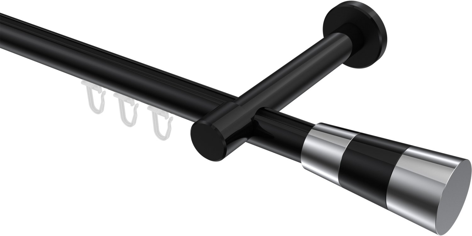 Gardinenstangen mit Innenlauf aus Aluminium / Metall in 20 mm Ø, 1-läufig, Modell PRESTIGE - Tanara Schwarz