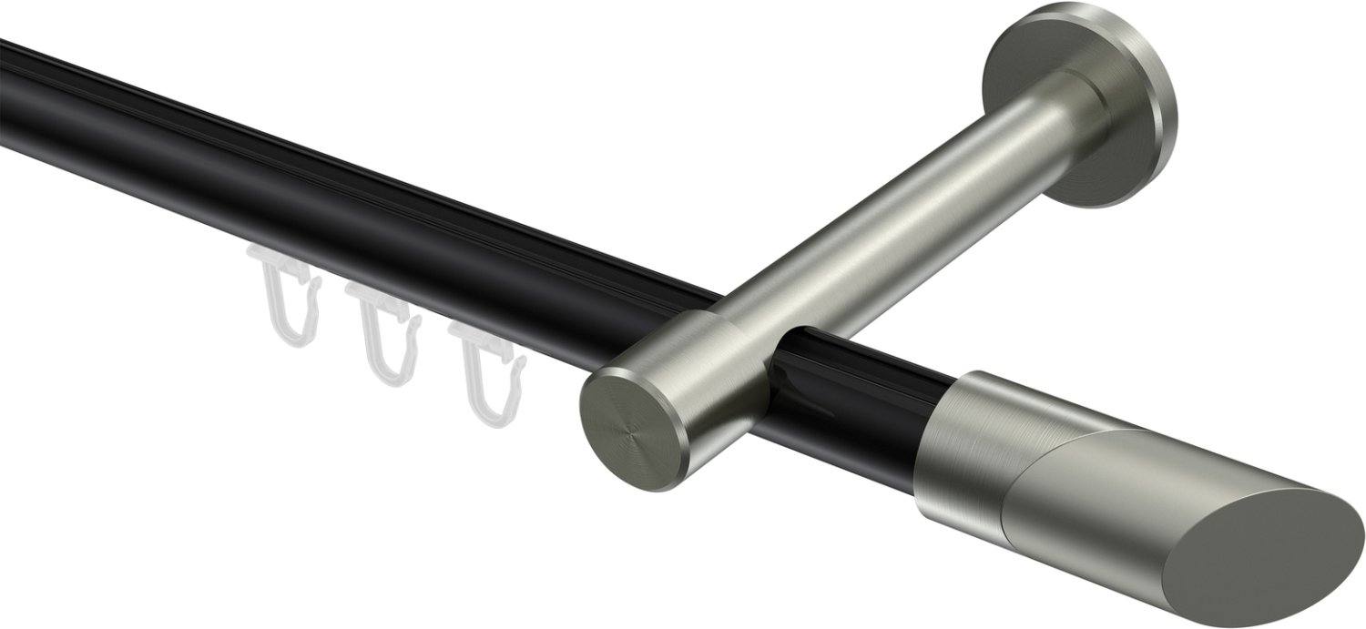 Informationen zu Innenlauf Gardinenstange Aluminium / Metall 20 mm Ø PRESTIGE - Verano Schwarz / Edelstahl-Optik: