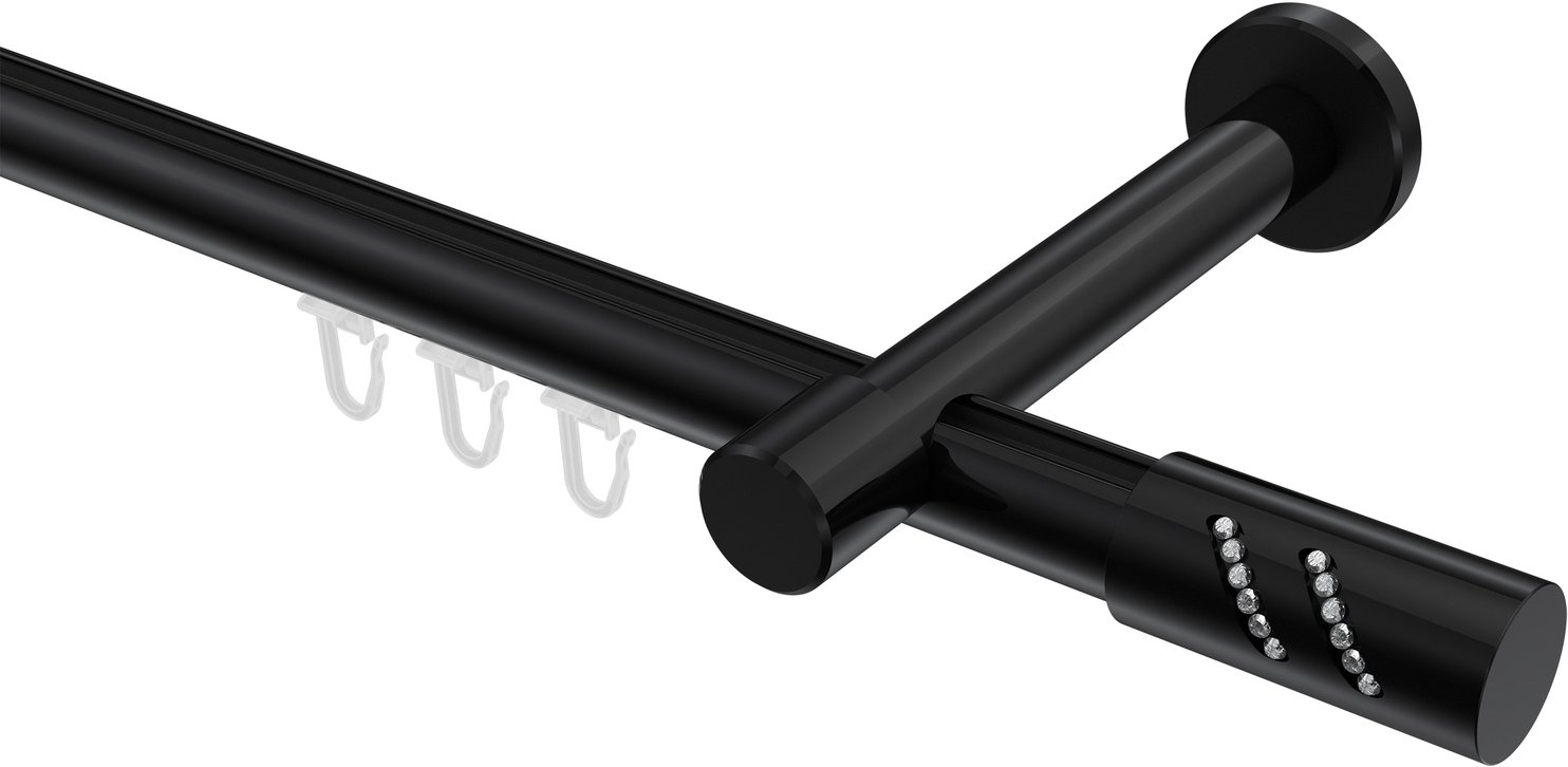 Gardinenstangen mit Innenlauf aus Aluminium / Metall in 20 mm Ø, 1-läufig, Modell PRESTIGE - Zoena Schwarz