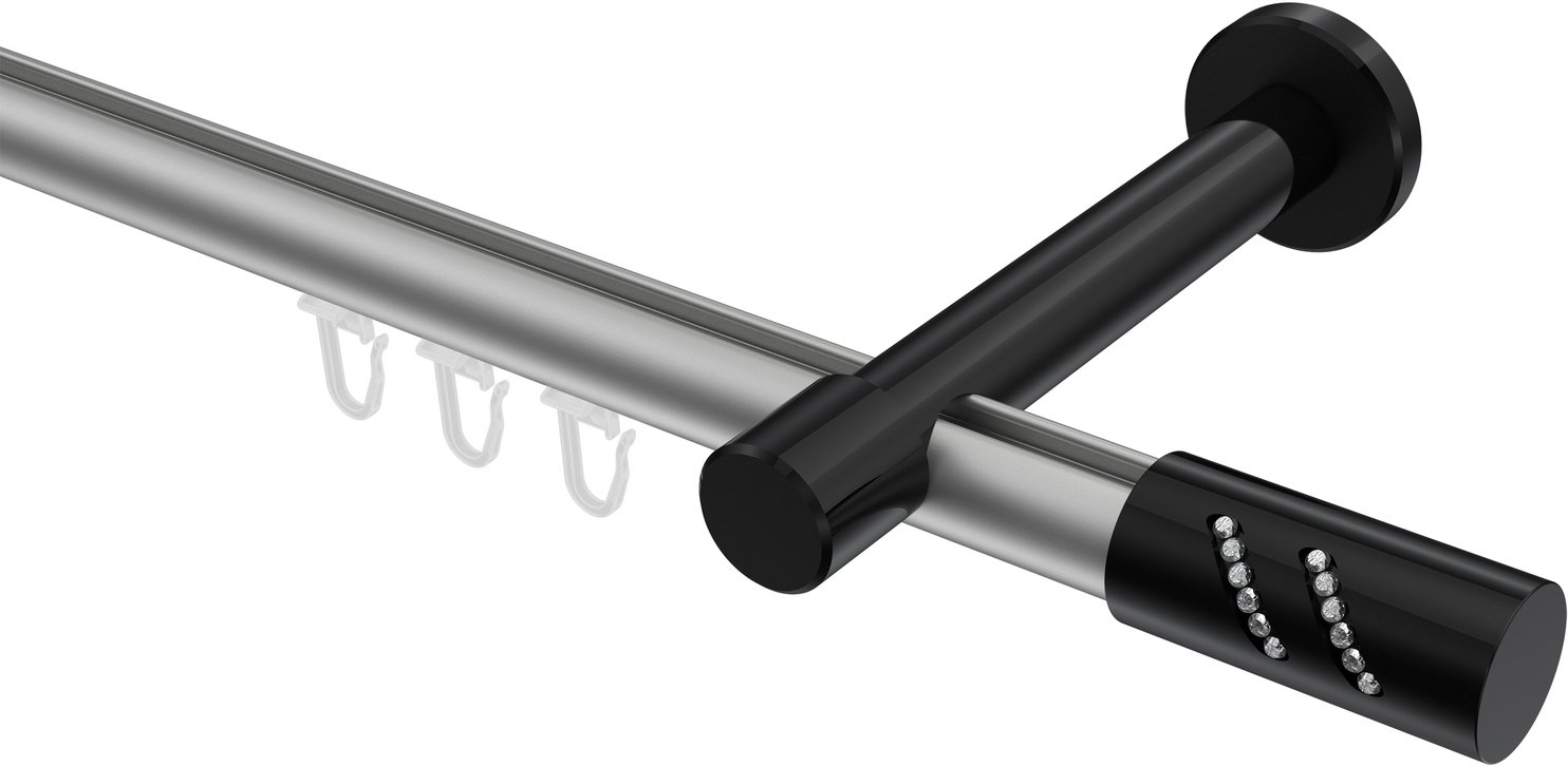 Gardinenstangen mit Innenlauf aus Aluminium / Metall in 20 mm Ø, 1-läufig, Modell PRESTIGE - Zoena Silbergrau / Schwarz