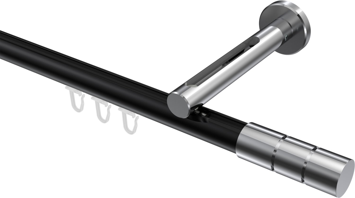 Gardinenstangen mit Innenlauf aus Aluminium / Metall in 20 mm Ø, 1-läufig, Modell SITENO - Elanto Schwarz / Chrom