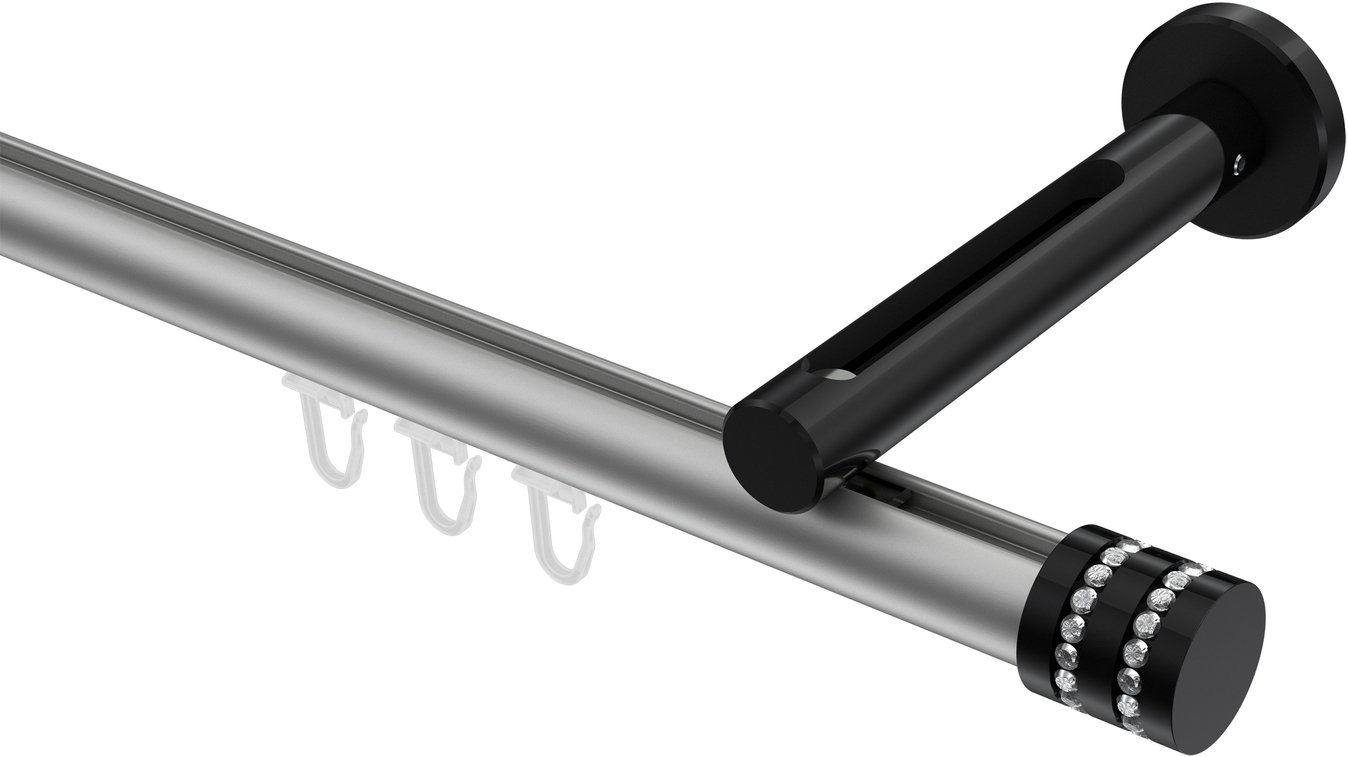 Gardinenstangen mit Innenlauf aus Aluminium / Metall in 20 mm Ø, 1-läufig, Modell SITENO - Estana Silbergrau / Schwarz