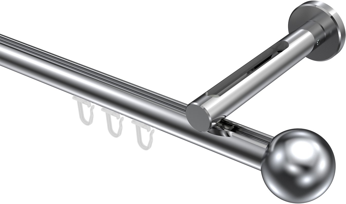 Gardinenstangen mit Innenlauf aus Aluminium / Metall in 20 mm Ø, 1-läufig, Modell SITENO - Luino Chrom