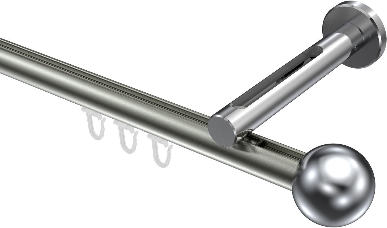 Gardinenstangen mit Innenlauf aus Aluminium / Metall in 20 mm Ø, 1-läufig, Modell SITENO - Luino Edelstahl-Optik / Chrom