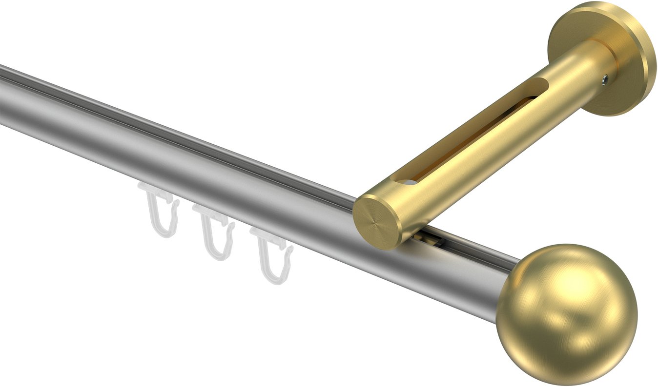 Gardinenstangen mit Innenlauf aus Aluminium / Metall in 20 mm Ø, 1-läufig, Modell SITENO - Luino Silbergrau / Messing-Optik