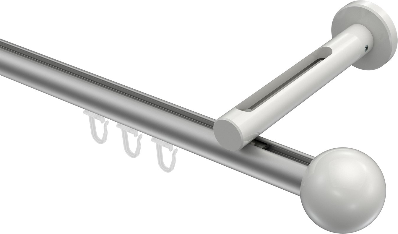 Gardinenstangen mit Innenlauf aus Aluminium / Metall in 20 mm Ø, 1-läufig, Modell SITENO - Luino Silbergrau / Weiß