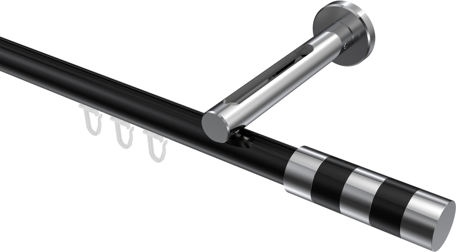 Gardinenstangen mit Innenlauf aus Aluminium / Metall in 20 mm Ø, 1-läufig, Modell SITENO - Mavell Schwarz / Chrom