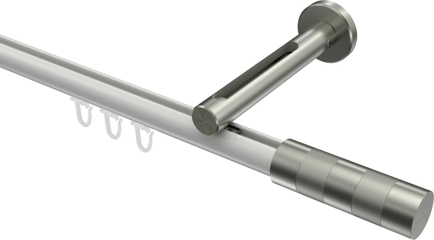 Gardinenstangen mit Innenlauf aus Aluminium / Metall in 20 mm Ø, 1-läufig, Modell SITENO - Mavell Weiß / Edelstahl-Optik