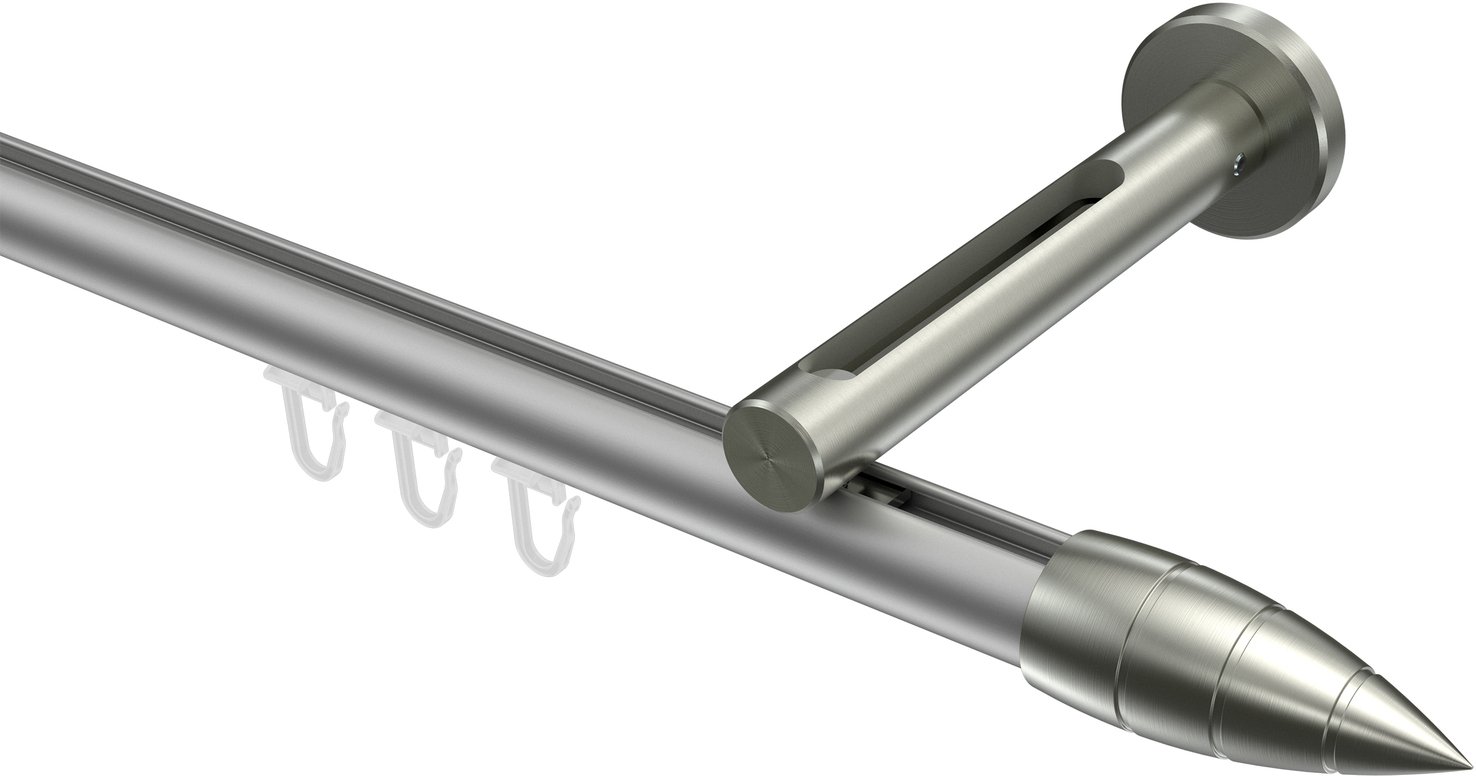 Gardinenstangen mit Innenlauf aus Aluminium / Metall in 20 mm Ø, 1-läufig, Modell SITENO - Samanto Silbergrau / Edelstahl-Optik