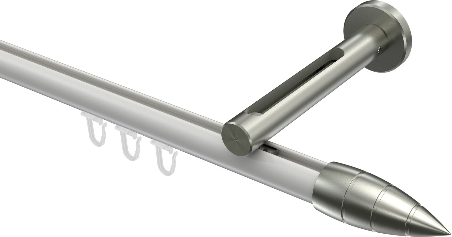 Gardinenstangen mit Innenlauf aus Aluminium / Metall in 20 mm Ø, 1-läufig, Modell SITENO - Samanto Weiß / Edelstahl-Optik
