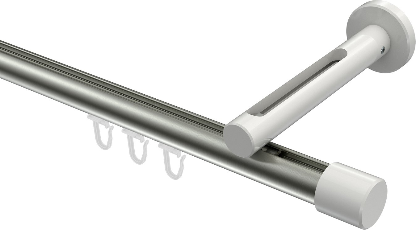 Informationen zu Innenlauf Gardinenstange Aluminium / Metall 20 mm Ø SITENO - Santo Edelstahl-Optik / Weiß: