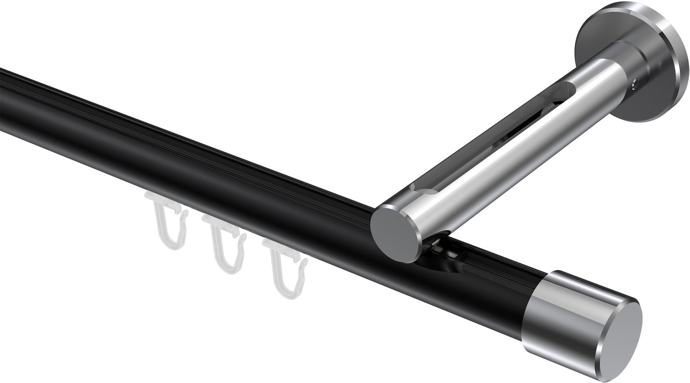 Gardinenstangen mit Innenlauf aus Aluminium / Metall in 20 mm Ø, 1-läufig, Modell SITENO - Santo Schwarz / Chrom