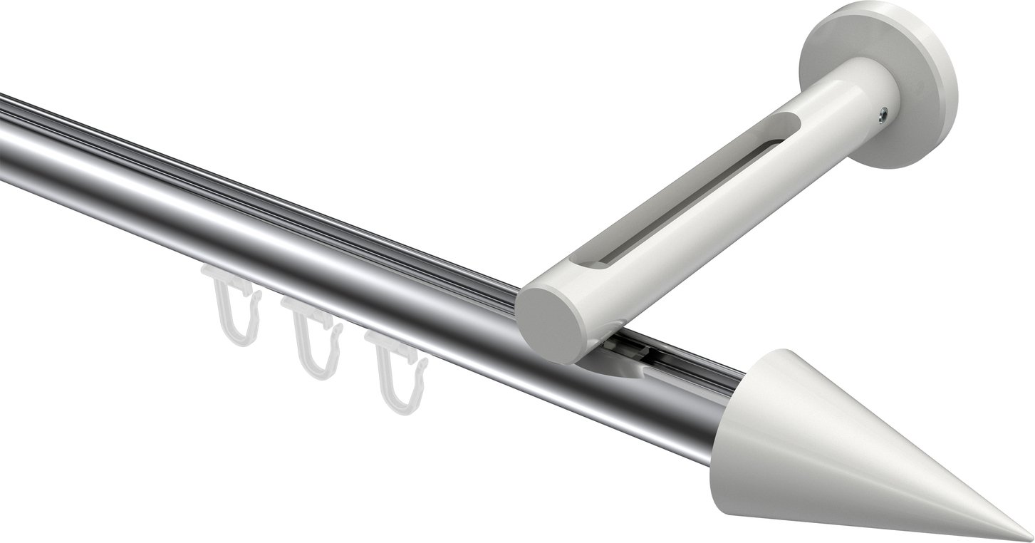 Gardinenstangen mit Innenlauf aus Aluminium / Metall in 20 mm Ø, 1-läufig, Modell SITENO - Savio Chrom / Weiß