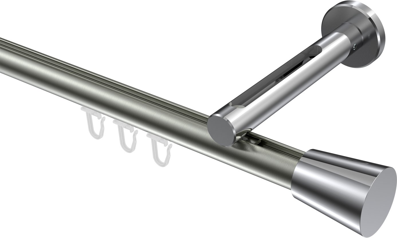 Gardinenstangen mit Innenlauf aus Aluminium / Metall in 20 mm Ø, 1-läufig, Modell SITENO - Sitra Edelstahl-Optik / Chrom