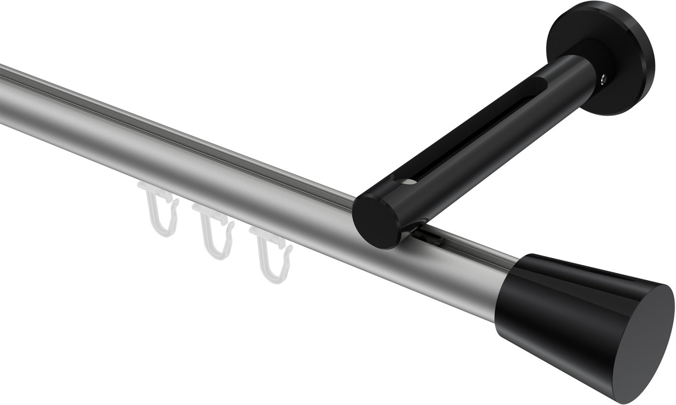 Gardinenstangen mit Innenlauf aus Aluminium / Metall in 20 mm Ø, 1-läufig, Modell SITENO - Sitra Silbergrau / Schwarz