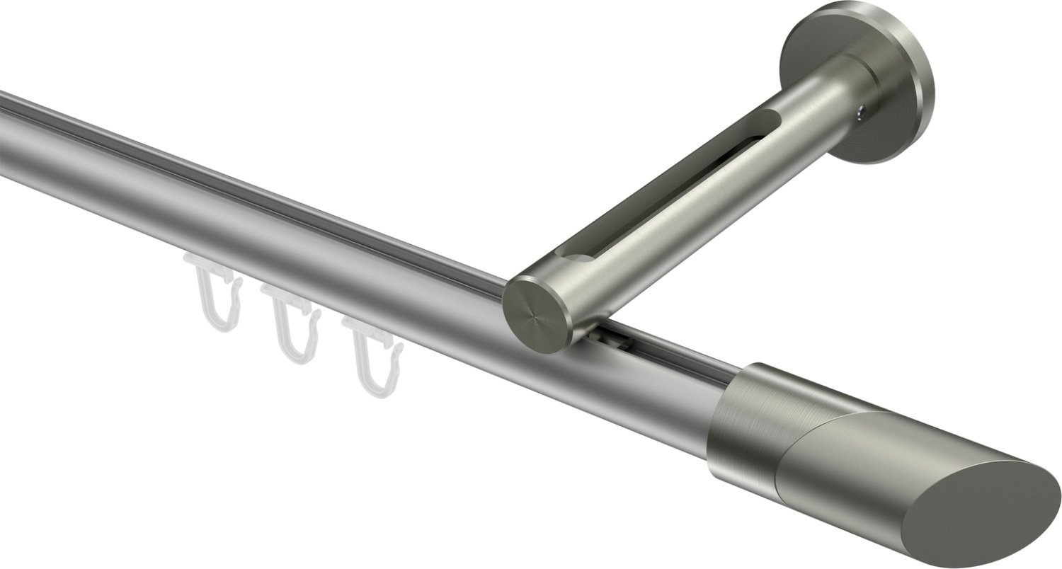 Gardinenstangen mit Innenlauf aus Aluminium / Metall in 20 mm Ø, 1-läufig, Modell SITENO - Verano Silbergrau / Edelstahl-Optik