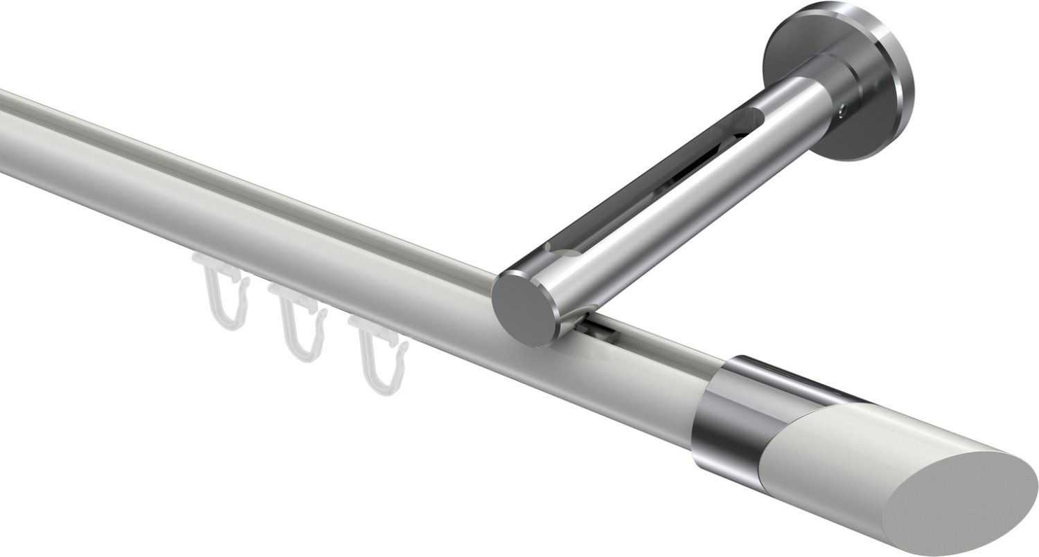Gardinenstangen mit Innenlauf aus Aluminium / Metall in 20 mm Ø, 1-läufig, Modell SITENO - Verano Weiß / Chrom