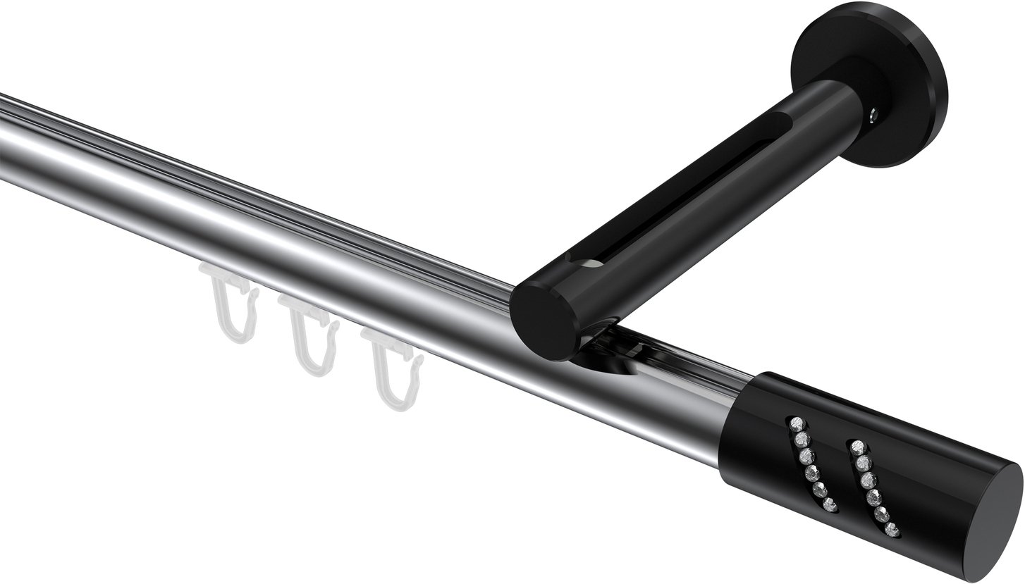 Gardinenstangen mit Innenlauf aus Aluminium / Metall in 20 mm Ø, 1-läufig, Modell SITENO - Zoena Chrom / Schwarz
