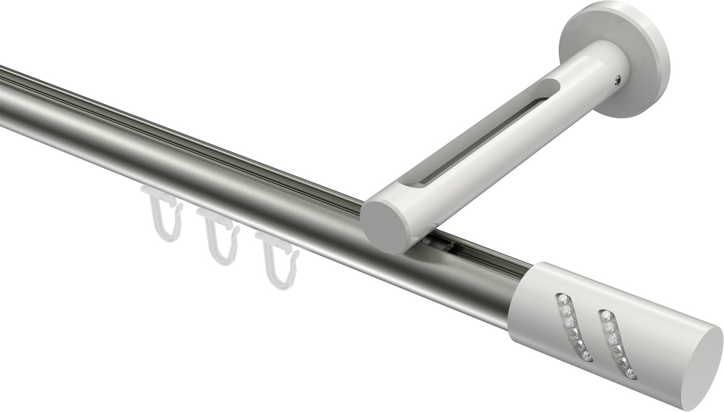 Gardinenstangen mit Innenlauf aus Aluminium / Metall in 20 mm Ø, 1-läufig, Modell SITENO - Zoena Edelstahl-Optik / Weiß