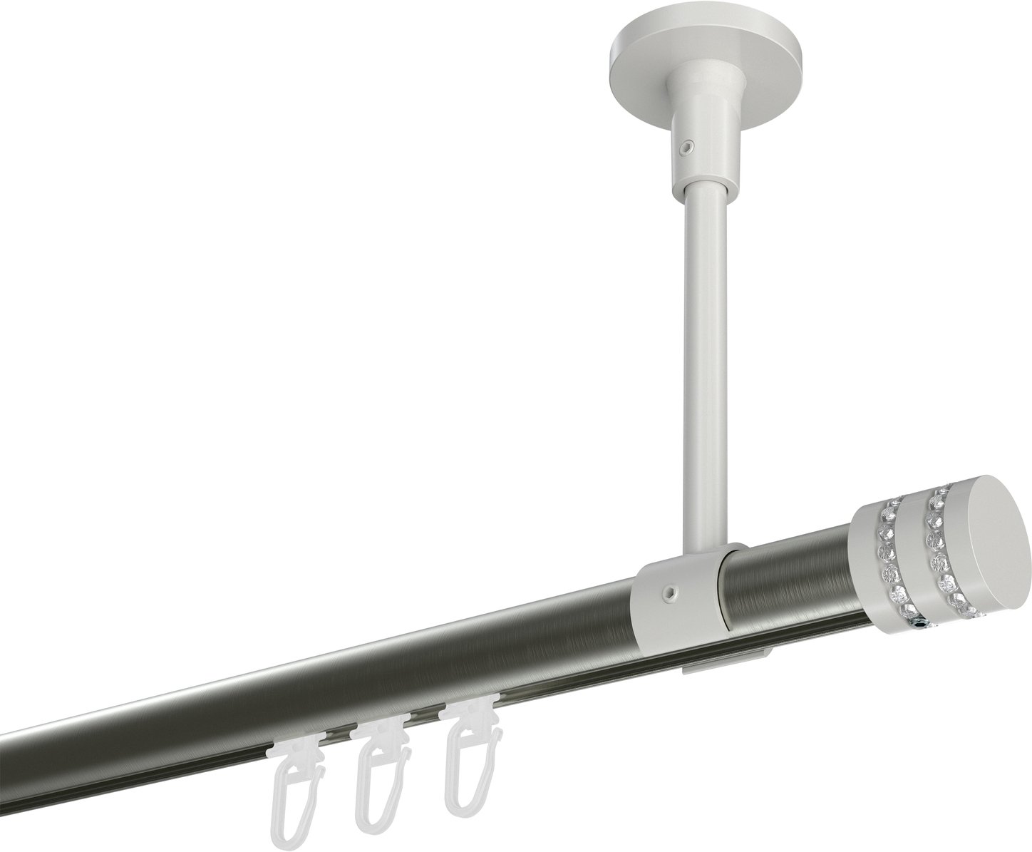 Gardinenstangen mit Innenlauf aus Aluminium / Metall in 20 mm Ø, 1-läufig, Modell SONETTE - Estana Edelstahl-Optik / Weiß