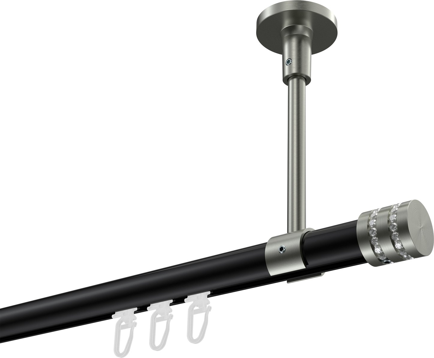 Gardinenstangen mit Innenlauf aus Aluminium / Metall in 20 mm Ø, 1-läufig, Modell SONETTE - Estana Schwarz / Edelstahl-Optik