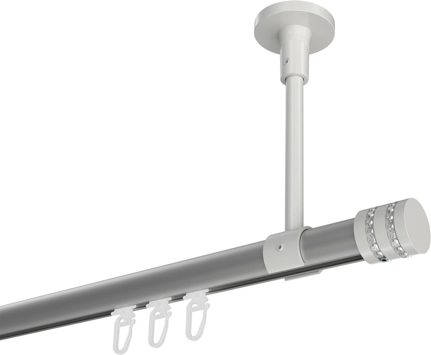 Gardinenstangen mit Innenlauf aus Aluminium / Metall in 20 mm Ø, 1-läufig, Modell SONETTE - Estana Silbergrau / Weiß
