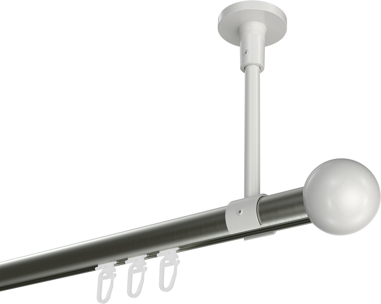 Gardinenstangen mit Innenlauf aus Aluminium / Metall in 20 mm Ø, 1-läufig, Modell SONETTE - Luino Edelstahl-Optik / Weiß