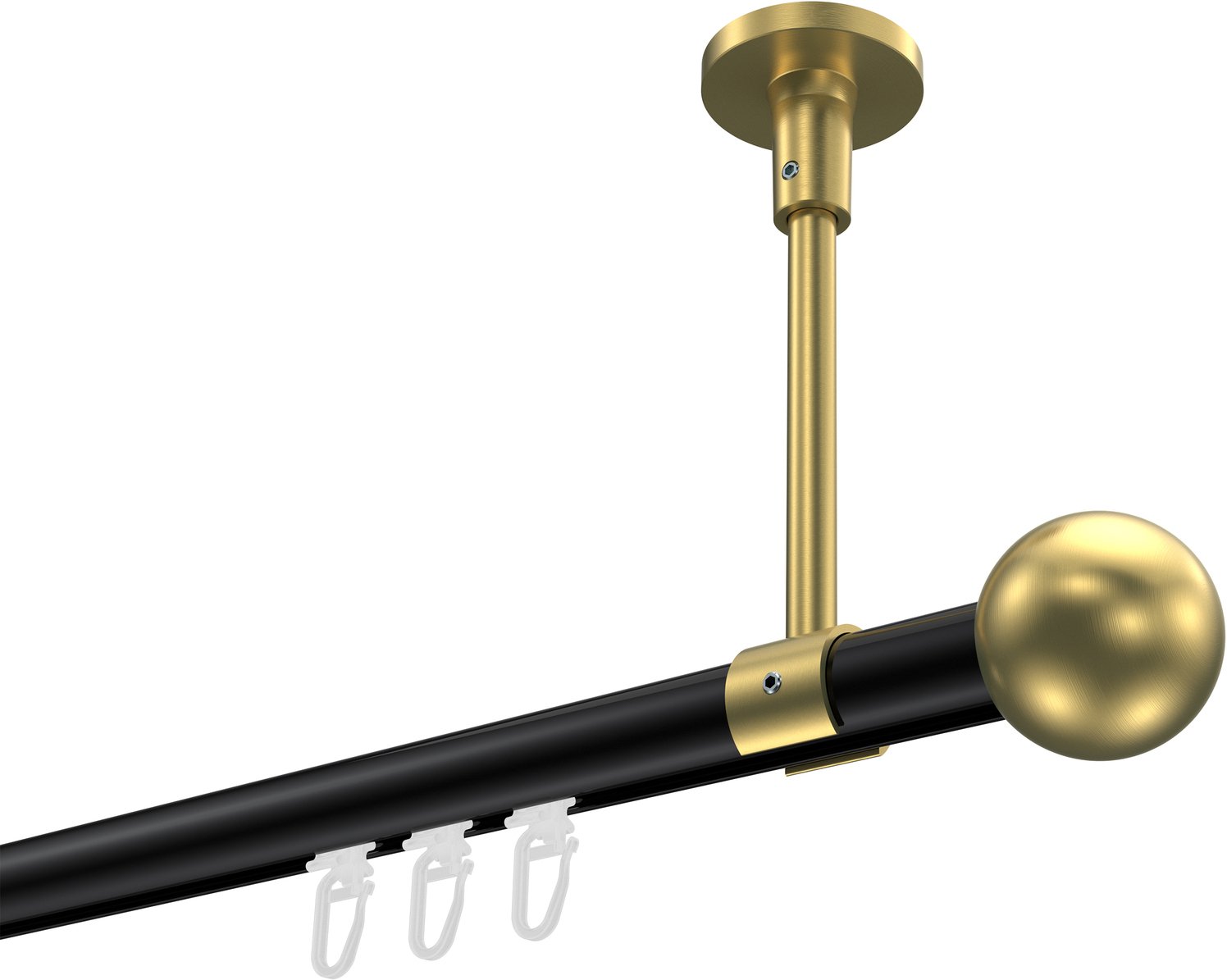 Gardinenstangen mit Innenlauf aus Aluminium / Metall in 20 mm Ø, 1-läufig, Modell SONETTE - Luino Schwarz / Messing-Optik