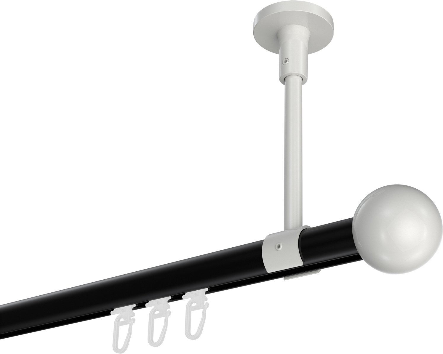 Gardinenstangen mit Innenlauf aus Aluminium / Metall in 20 mm Ø, 1-läufig, Modell SONETTE - Luino Schwarz / Weiß