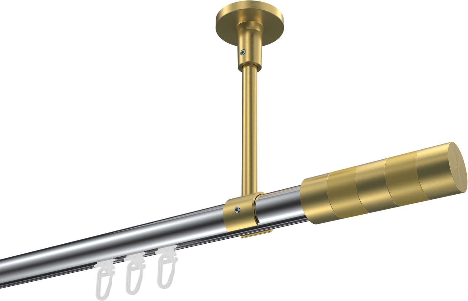 Gardinenstangen mit Innenlauf aus Aluminium / Metall in 20 mm Ø, 1-läufig, Modell SONETTE - Mavell Chrom / Messing-Optik