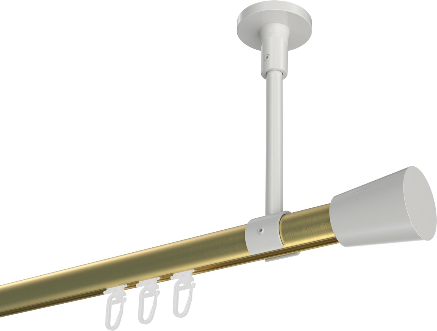 Gardinenstangen mit Innenlauf aus Aluminium / Metall in 20 mm Ø, 1-läufig, Modell SONETTE - Sitra Messing-Optik / Weiß