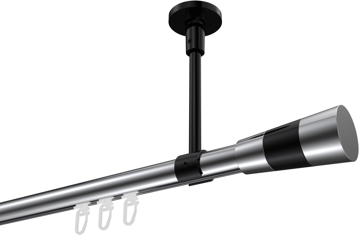 Gardinenstangen mit Innenlauf aus Aluminium / Metall in 20 mm Ø, 1-läufig, Modell SONETTE - Tanara Chrom / Schwarz