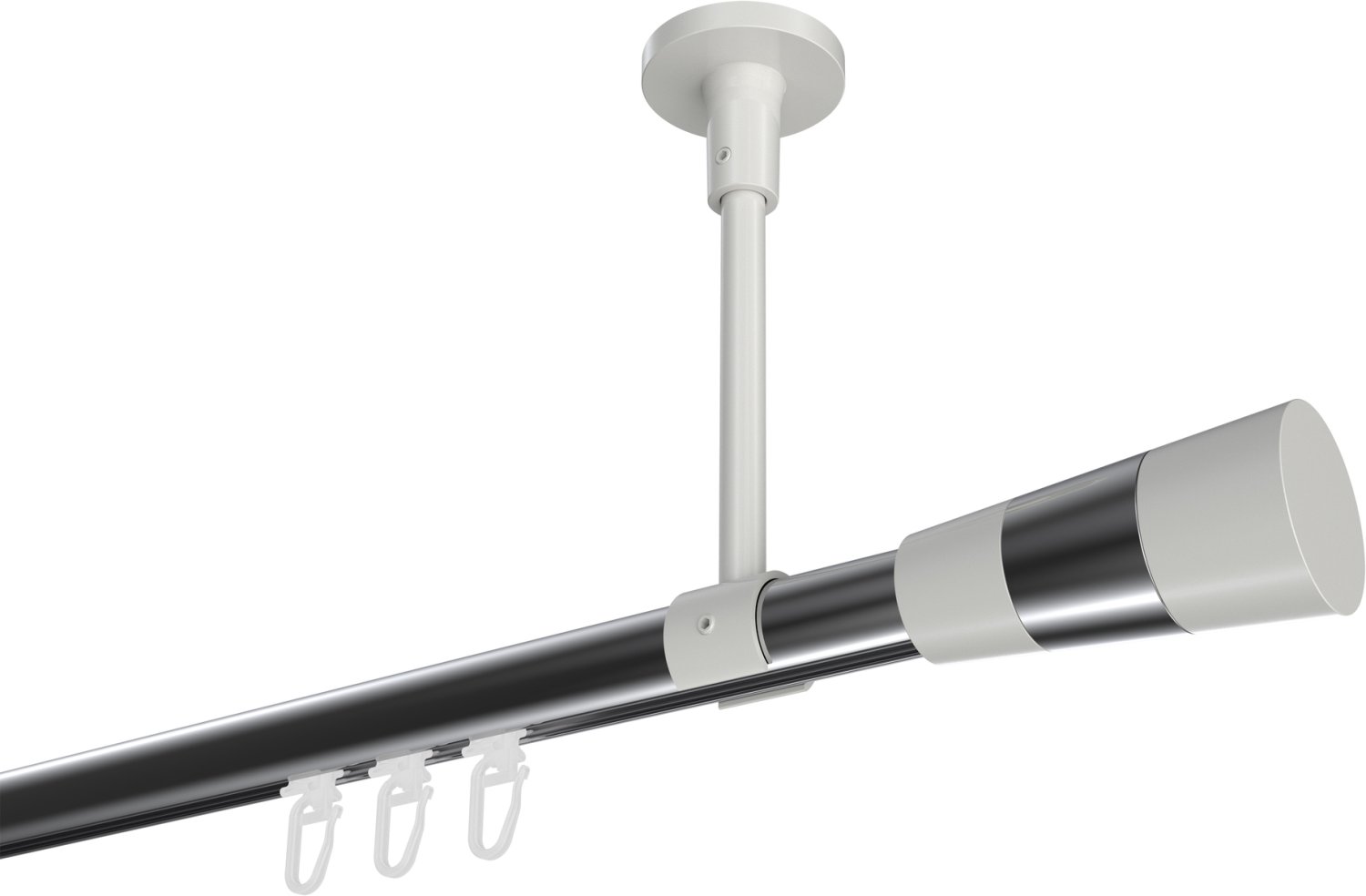 Gardinenstangen mit Innenlauf aus Aluminium / Metall in 20 mm Ø, 1-läufig, Modell SONETTE - Tanara Chrom / Weiß